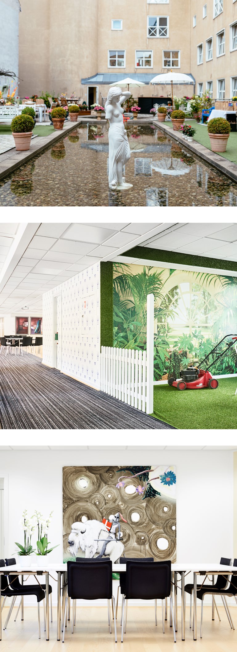Vore lokaler er venlige og lyse, inspirerende og kreative, store og med udgang til stor hyggelig terrasse. Vi har alle moderne faciliteter, den nyeste kunst og danske designmøbler.